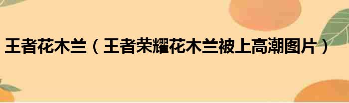 大家好,今天小六子来为大家解答以下的问题,关于王者花木兰,王者荣耀花木兰被上高潮图片这个很多人还不知道,现在让我们一起来看看吧!