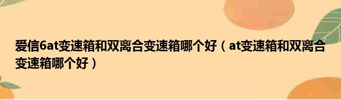 大家好,今天小六子来为大家解答以下的问题,关于爱信6at变速箱和双离合变速箱哪个好,at变速箱和双离合变速箱哪个好这个很多人还不知道,现在让我们一起来看看吧!