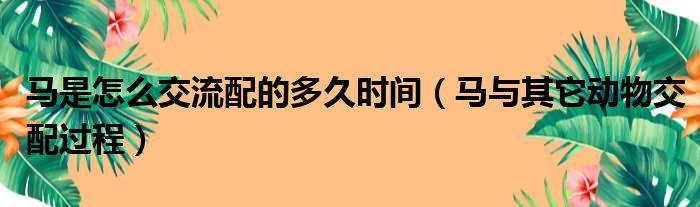大家好,今天小六子来为大家解答以下的问题,关于马是怎么交流配的多久时间,马与其它动物交配过程这个很多人还不知道,现在让我们一起来看看吧!