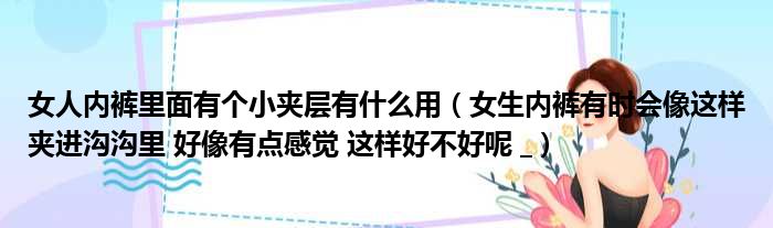 大家好,今天小六子来为大家解答以下的问题,关于女人内裤里面有个小夹层有什么用,女生内裤有时会像这样夹进沟沟里 好像有点感觉 这样好不好呢 _这个很多人还不知道,现在让我们一起来看看吧!