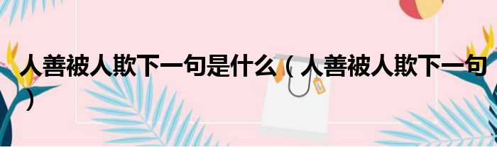 人善被人欺下一句是什么 人善被人欺下一句 网络整理 经验 2023-06-24 04:40:05 大家好,今天小六子来为大家解答以下的问题,关于人善被人欺下一句是什么,人善被人欺下一句这个很多人还不知道,现在让我们一起来看看吧!1、马善被人骑....。本文分享完毕,希望对你有所帮助。 声明:免责声明:本文来源网友投稿及网络整合仅代表文章作者的个人观点,与本站无关。其原创性、真实性以及文中陈述文字和内容未经本站证实,对本文以及其中全部或者部分内容文字的真实性、完整性和原创性本站不作任何保证或承诺,请读者仅作参考,并自行核实相关内容。投诉邮箱:1765130767@qq.com。 本文地址:https://www.anfu123.com/jingyan/76792.html