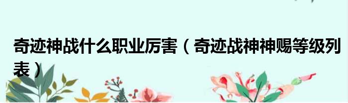 大家好,今天小六子来为大家解答以下的问题,关于奇迹神战什么职业厉害,奇迹战神神赐等级列表这个很多人还不知道,现在让我们一起来看看吧!