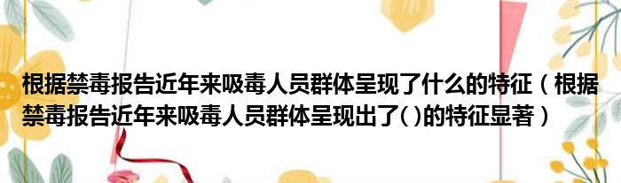 大家好,今天小六子来为大家解答以下的问题,关于根据禁毒报告近年来吸毒人员群体呈现了什么的特征,根据禁毒报告近年来吸毒人员群体呈现出了( )的特征显著这个很多人还不知道,现在让我们一起来看看吧!