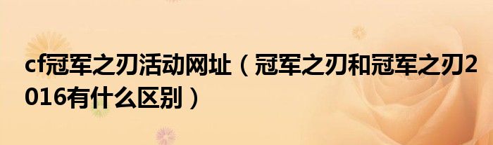 大家好,今天小六子来为大家解答以下的问题,关于cf冠军之刃活动网址,冠军之刃和冠军之刃2016有什么区别这个很多人还不知道,现在让我们一起来看看吧!