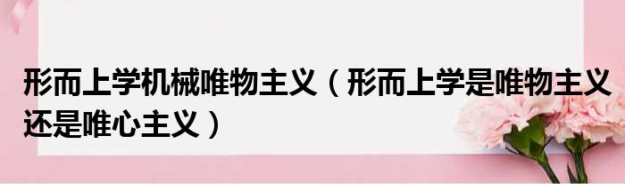 大家好,今天小六子来为大家解答以下的问题,关于形而上学机械唯物主义,形而上学是唯物主义还是唯心主义这个很多人还不知道,现在让我们一起来看看吧!