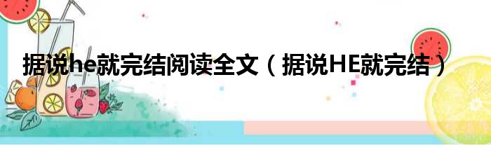 大家好,今天小六子来为大家解答以下的问题,关于据说he就完结阅读全文,据说HE就完结这个很多人还不知道,现在让我们一起来看看吧!