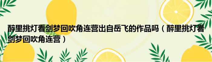大家好,今天小六子来为大家解答以下的问题,关于醉里挑灯看剑梦回吹角连营出自岳飞的作品吗,醉里挑灯看剑梦回吹角连营这个很多人还不知道,现在让我们一起来看看吧!