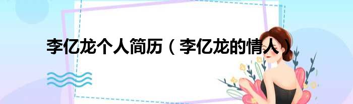 大家好,今天小六子来为大家解答以下的问题,关于李亿龙个人简历,李亿龙的情人这个很多人还不知道,现在让我们一起来看看吧!