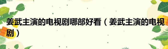 大家好,今天小六子来为大家解答以下的问题,关于姜武主演的电视剧哪部好看,姜武主演的电视剧这个很多人还不知道,现在让我们一起来看看吧!