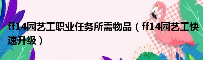 大家好,今天小六子来为大家解答以下的问题,关于ff14园艺工职业任务所需物品,ff14园艺工快速升级这个很多人还不知道,现在让我们一起来看看吧!