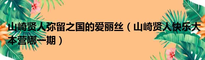 大家好,今天小六子来为大家解答以下的问题,关于山崎贤人弥留之国的爱丽丝,山崎贤人快乐大本营哪一期这个很多人还不知道,现在让我们一起来看看吧!