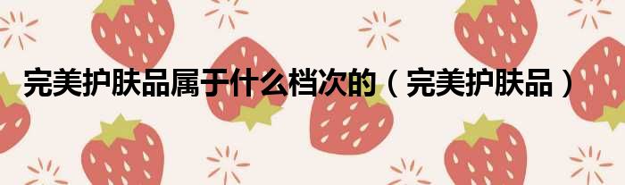 大家好,今天小六子来为大家解答以下的问题,关于完美护肤品属于什么档次的,完美护肤品这个很多人还不知道,现在让我们一起来看看吧!