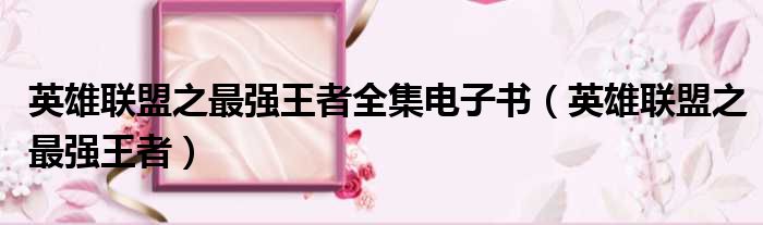 大家好,今天小六子来为大家解答以下的问题,关于英雄联盟之最强王者全集电子书,英雄联盟之最强王者这个很多人还不知道,现在让我们一起来看看吧!