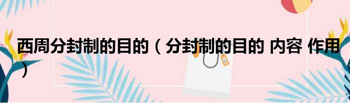 大家好,今天小六子来为大家解答以下的问题,关于西周分封制的目的,分封制的目的 内容 作用这个很多人还不知道,现在让我们一起来看看吧!