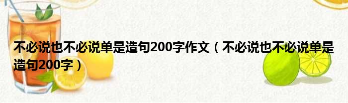 大家好,今天小六子来为大家解答以下的问题,关于不必说也不必说单是造句200字作文,不必说也不必说单是造句200字这个很多人还不知道,现在让我们一起来看看吧!