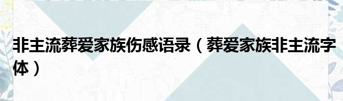 大家好,今天小六子来为大家解答以下的问题,关于非主流葬爱家族伤感语录,葬爱家族非主流字体这个很多人还不知道,现在让我们一起来看看吧!