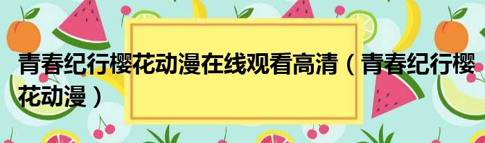 大家好,今天小六子来为大家解答以下的问题,关于青春纪行樱花动漫在线观看高清,青春纪行樱花动漫这个很多人还不知道,现在让我们一起来看看吧!