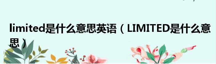 大家好,今天小六子来为大家解答以下的问题,关于limited是什么意思英语,LIMITED是什么意思这个很多人还不知道,现在让我们一起来看看吧!