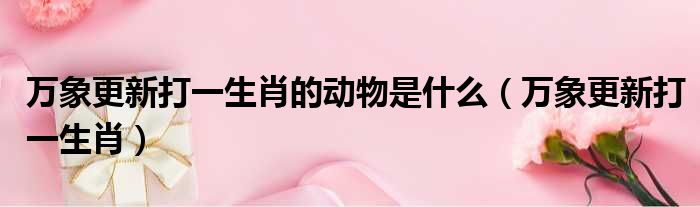万象更新打一生肖的动物是什么 万象更新打一生肖 网络整理 经验 2023-06-26 06:42:06 大家好,今天小六子来为大家解答以下的问题,关于万象更新打一生肖的动物是什么,万象更新打一生肖这个很多人还不知道,现在让我们一起来看看吧!1、指春天,正月简寅。2、寅虎。本文分享完毕,希望对你有所帮助。 声明:免责声明:本文来源网友投稿及网络整合仅代表文章作者的个人观点,与本站无关。其原创性、真实性以及文中陈述文字和内容未经本站证实,对本文以及其中全部或者部分内容文字的真实性、完整性和原创性本站不作任何保证或承诺,请读者仅作参考,并自行核实相关内容。投诉邮箱:1765130767@qq.com。 本文地址:https://www.anfu123.com/jingyan/77531.html