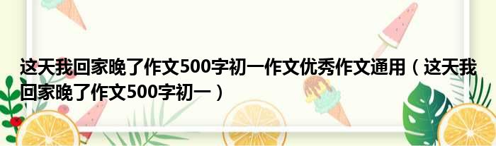 大家好,今天小六子来为大家解答以下的问题,关于这天我回家晚了作文500字初一作文优秀作文通用,这天我回家晚了作文500字初一这个很多人还不知道,现在让我们一起来看看吧!