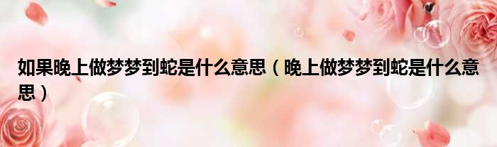 大家好,今天小六子来为大家解答以下的问题,关于如果晚上做梦梦到蛇是什么意思,晚上做梦梦到蛇是什么意思这个很多人还不知道,现在让我们一起来看看吧!