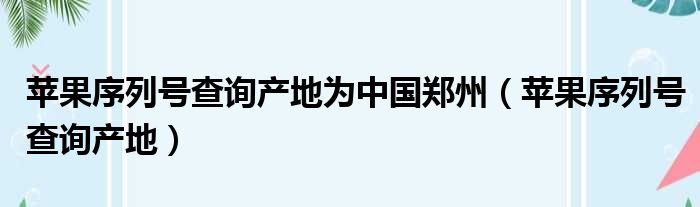 大家好,今天小六子来为大家解答以下的问题,关于苹果序列号查询产地为中国郑州,苹果序列号查询产地这个很多人还不知道,现在让我们一起来看看吧!