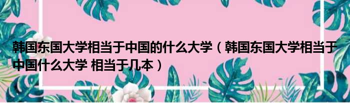 大家好,今天小六子来为大家解答以下的问题,关于韩国东国大学相当于中国的什么大学,韩国东国大学相当于中国什么大学 相当于几本这个很多人还不知道,现在让我们一起来看看吧!