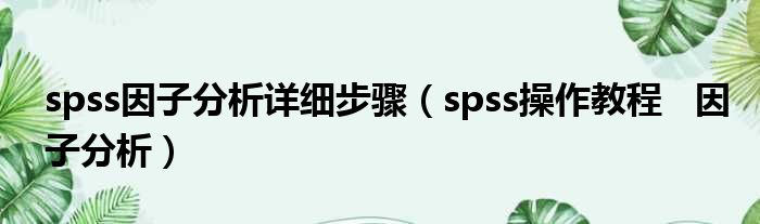 大家好,今天小六子来为大家解答以下的问题,关于spss因子分析详细步骤,spss操作教程 因子分析这个很多人还不知道,现在让我们一起来看看吧!