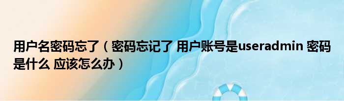 大家好,今天小六子来为大家解答以下的问题,关于用户名密码忘了,密码忘记了 用户账号是useradmin 密码是什么 应该怎么办这个很多人还不知道,现在让我们一起来看看吧!