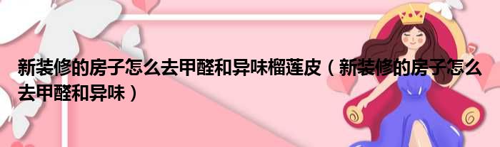 大家好,今天小六子来为大家解答以下的问题,关于新装修的房子怎么去甲醛和异味榴莲皮,新装修的房子怎么去甲醛和异味这个很多人还不知道,现在让我们一起来看看吧!