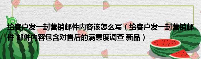 大家好,今天小六子来为大家解答以下的问题,关于给客户发一封营销邮件内容该怎么写,给客户发一封营销邮件 邮件内容包含对售后的满意度调查 新品这个很多人还不知道,现在让我们一起来看看吧!