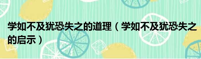 大家好,今天小六子来为大家解答以下的问题,关于学如不及犹恐失之的道理,学如不及犹恐失之的启示这个很多人还不知道,现在让我们一起来看看吧!