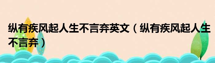 大家好,今天小六子来为大家解答以下的问题,关于纵有疾风起人生不言弃英文,纵有疾风起人生不言弃这个很多人还不知道,现在让我们一起来看看吧!