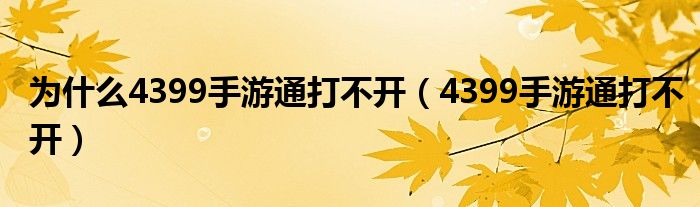 大家好,今天小六子来为大家解答以下的问题,关于为什么4399手游通打不开,4399手游通打不开这个很多人还不知道,现在让我们一起来看看吧!