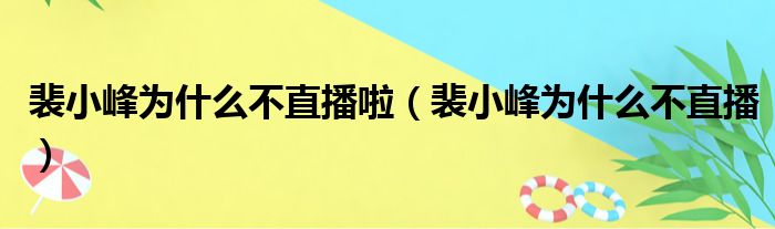 大家好,今天小六子来为大家解答以下的问题,关于裴小峰为什么不直播啦,裴小峰为什么不直播这个很多人还不知道,现在让我们一起来看看吧!