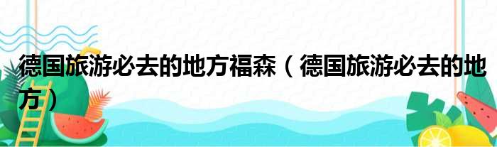 大家好,今天小六子来为大家解答以下的问题,关于德国旅游必去的地方福森,德国旅游必去的地方这个很多人还不知道,现在让我们一起来看看吧!