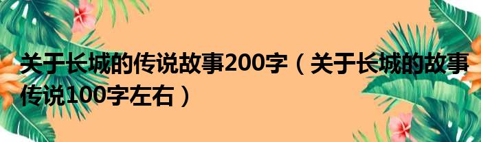 大家好,今天小六子来为大家解答以下的问题,关于关于长城的传说故事200字,关于长城的故事传说100字左右这个很多人还不知道,现在让我们一起来看看吧!
