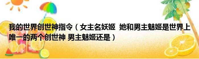 我的世界创世神指令 女主名妖姬 她和男主魅姬是世界上唯一的两个创世神 男主魅姬还是 网络整理 经验 2023-06-28 12:15:08 大家好,今天小六子来为大家解答以下的问题,关于我的世界创世神指令,女主名妖姬 她和男主魅姬是世界上唯一的两个创世神 男主魅姬还是这个很多人还不知道,现在让我们一起来看看吧!1、妖姬魅天下。本文分享完毕,希望对你有所帮助。 声明:免责声明:本文来源网友投稿及网络整合仅代表文章作者的个人观点,与本站无关。其原创性、真实性以及文中陈述文字和内容未经本站证实,对本文以及其中全部或者部分内容文字的真实性、完整性和原创性本站不作任何保证或承诺,请读者仅作参考,并自行核实相关内容。投诉邮箱:1765130767@qq.com。 本文地址:https://www.anfu123.com/jingyan/80140.html