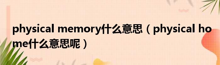 physical memory什么意思 physical home什么意思呢 网络整理 经验 2023-06-28 12:25:07 大家好,今天小六子来为大家解答以下的问题,关于physical memory什么意思,physical home什么意思呢这个很多人还不知道,现在让我们一起来看看吧!1、她真实存在的家。本文分享完毕,希望对你有所帮助。 声明:免责声明:本文来源网友投稿及网络整合仅代表文章作者的个人观点,与本站无关。其原创性、真实性以及文中陈述文字和内容未经本站证实,对本文以及其中全部或者部分内容文字的真实性、完整性和原创性本站不作任何保证或承诺,请读者仅作参考,并自行核实相关内容。投诉邮箱:1765130767@qq.com。 本文地址:https://www.anfu123.com/jingyan/80141.html
