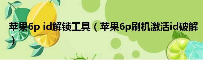 大家好,今天小六子来为大家解答以下的问题,关于苹果6p id解锁工具,苹果6p刷机激活id破解这个很多人还不知道,现在让我们一起来看看吧!