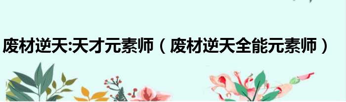 大家好,今天小六子来为大家解答以下的问题,关于废材逆天:天才元素师,废材逆天全能元素师这个很多人还不知道,现在让我们一起来看看吧!