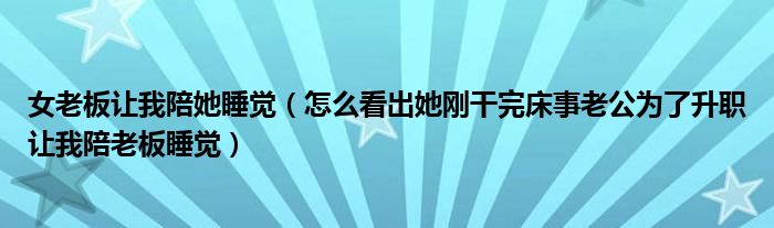 大家好,今天小六子来为大家解答以下的问题,关于女老板让我陪她睡觉,怎么看出她刚干完床事老公为了升职让我陪老板睡觉这个很多人还不知道,现在让我们一起来看看吧!