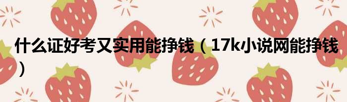 大家好,今天小六子来为大家解答以下的问题,关于什么证好考又实用能挣钱,17k小说网能挣钱这个很多人还不知道,现在让我们一起来看看吧!
