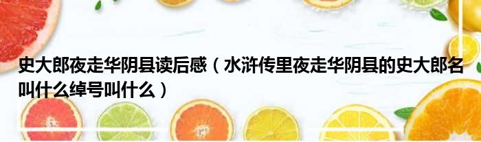 大家好,今天小六子来为大家解答以下的问题,关于史大郎夜走华阴县读后感,水浒传里夜走华阴县的史大郎名叫什么绰号叫什么这个很多人还不知道,现在让我们一起来看看吧!