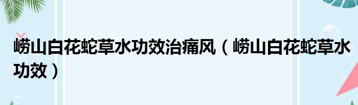 大家好,今天小六子来为大家解答以下的问题,关于崂山白花蛇草水功效治痛风,崂山白花蛇草水功效这个很多人还不知道,现在让我们一起来看看吧!