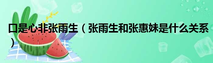 大家好,今天小六子来为大家解答以下的问题,关于口是心非张雨生,张雨生和张惠妹是什么关系这个很多人还不知道,现在让我们一起来看看吧!