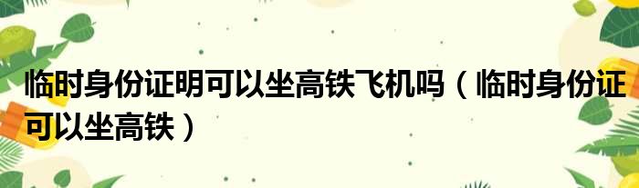 大家好,今天小六子来为大家解答以下的问题,关于临时身份证明可以坐高铁飞机吗,临时身份证可以坐高铁这个很多人还不知道,现在让我们一起来看看吧!