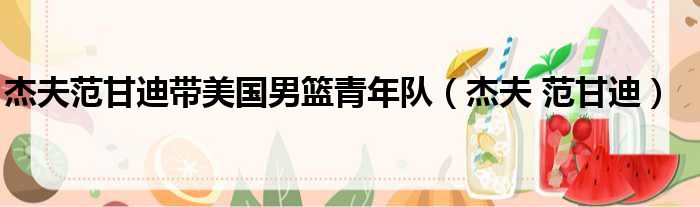 大家好,今天小六子来为大家解答以下的问题,关于杰夫范甘迪带美国男篮青年队,杰夫 范甘迪这个很多人还不知道,现在让我们一起来看看吧!