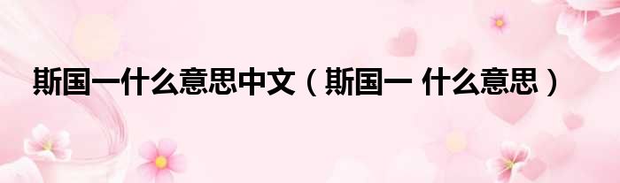 大家好,今天小六子来为大家解答以下的问题,关于斯国一什么意思中文,斯国一 什么意思这个很多人还不知道,现在让我们一起来看看吧!
