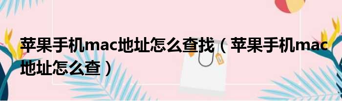 大家好,今天小六子来为大家解答以下的问题,关于苹果手机mac地址怎么查找,苹果手机mac地址怎么查这个很多人还不知道,现在让我们一起来看看吧!